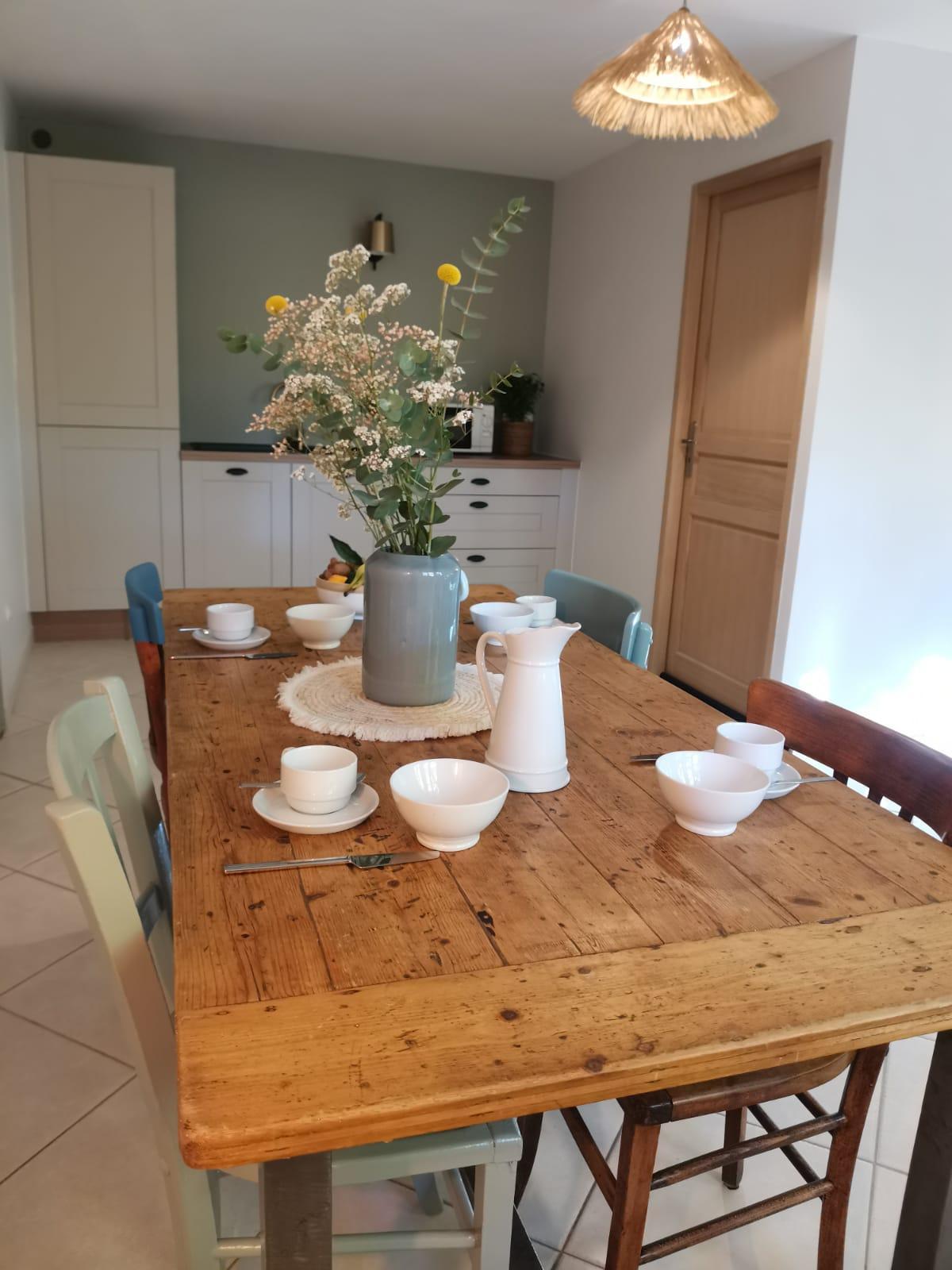 En mai, juin, septembre et octobre nous proposons une cuisine et des petits déjeuners maison à base de produits bio ou locaux et de légumes du potager de la maison.Vous serez servis sur nos terrasses ou dans la salle à manger commune. Merci de réserver votre menu la veille au plus tard.